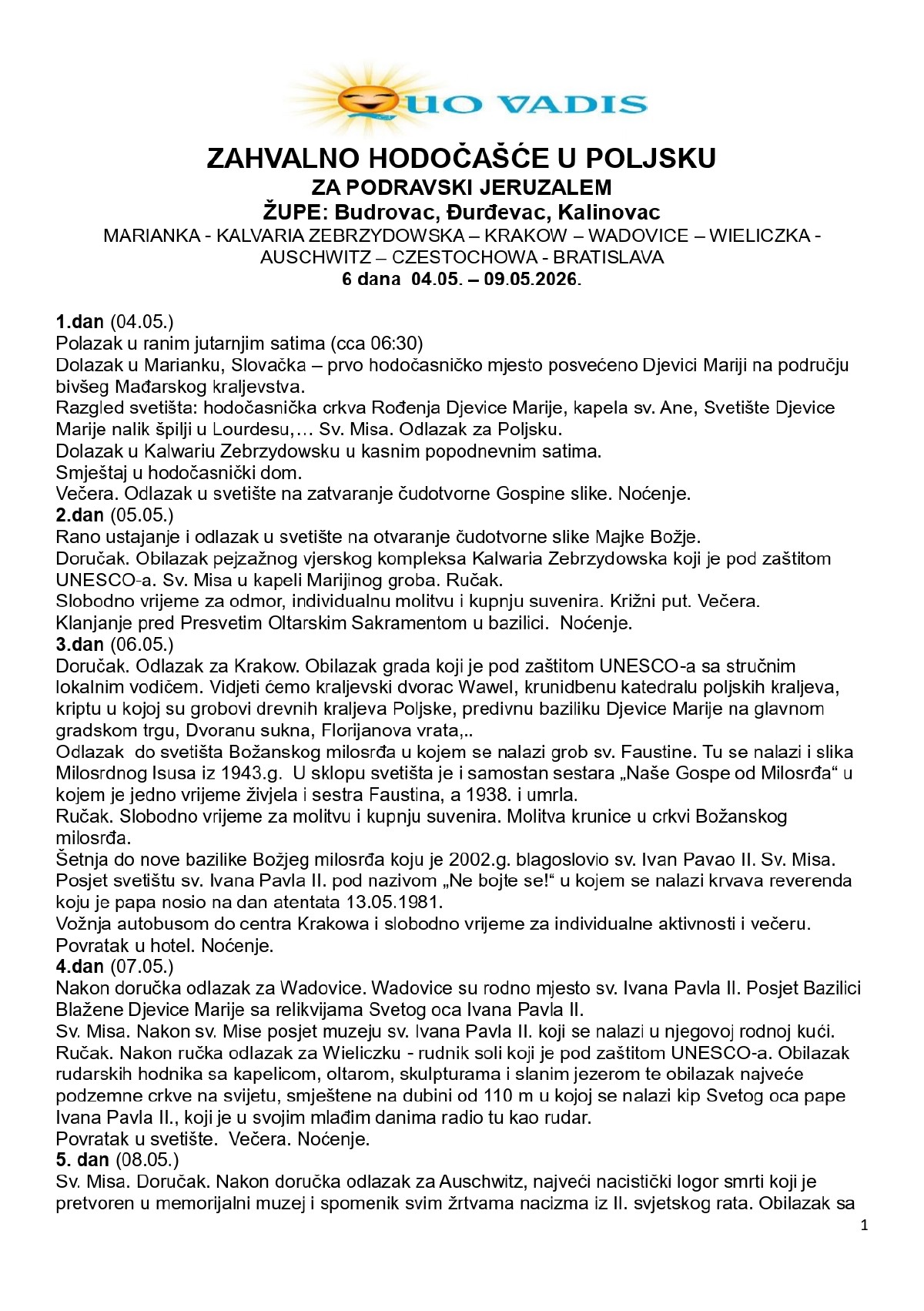 Poziv svim ljudima dobre volje NA HODOČAŠĆE U POLJSKU |
