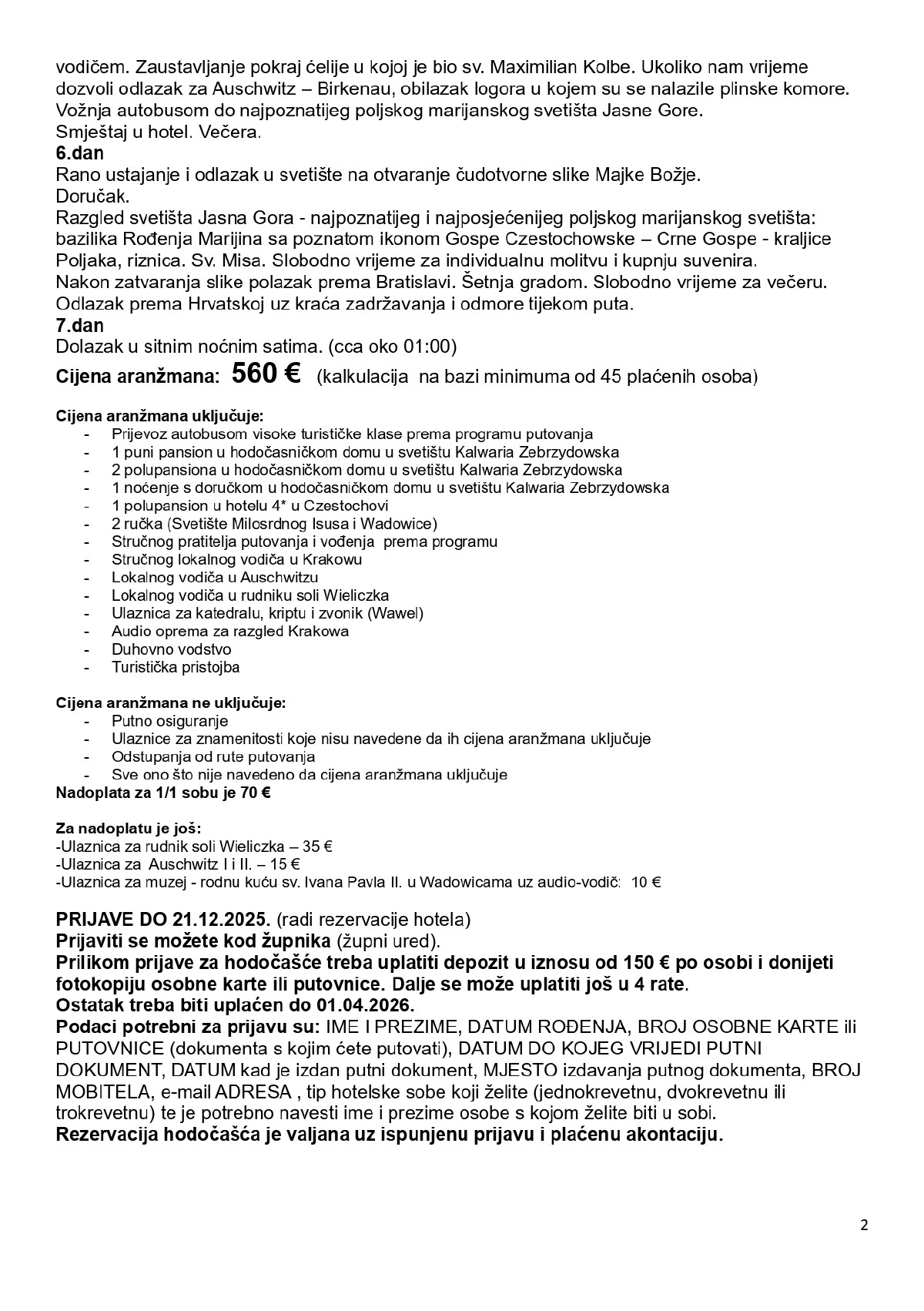 - prijave i rezervacije kod župnika do 21. 12. 2025. VRLOO
